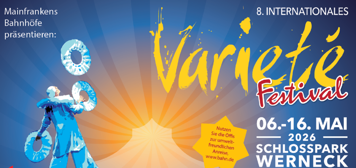 Ebenfalls im Programm: die neue Themenshow „Varieté Lebensfreude“ (14. & 15. Mai), in der erstklassige Akrobatik, Comedy, Luftartistik, Jonglage und temporeiche Gruppenacts zu einem inspirierenden Gesamtkunstwerk verschmelzen. Weitere Publikumslieblinge wie „Varieté Lachen Machen“, der Sparkassen-Familientag Erlebnisvarieté und die festliche Abschluss-Gala (16. Mai) runden das Programm ab. Das Festival steht unter der Schirmherrschaft von Landrat Florian Töpper und dem Bezirkstagspräsidenten Stefan Funk und wird in Kooperation mit dem Landkreis Schweinfurt, dem Bezirk Unterfranken und dem Markt Werneck veranstaltet.
